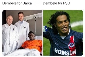 巴萨的登贝莱vs巴黎的登贝莱