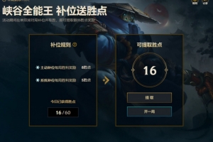 参与方法:活动期间,玩家在单双排模式中主动选择补位并取胜,每局奖励8胜点;系统分配补位并取胜,每局奖励5胜点。奖励的胜点可在客户端大厅-补位送胜点活动页面中提取。