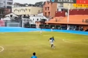 5月27日,第十五届全国运动会群众比赛足球项目七人制男子乙组的一场比赛,北京队在佛山赛区对阵上海队,比赛中北京队球员曹博远将上海队球员左腿腓骨踢骨折。