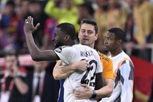 当孔德第116分钟攻入制胜球时,已被换下的吕迪格正坐在替补席。终场前裁判里卡多-德布尔戈斯判罚了姆巴佩对埃里克-加西亚犯规,此举彻底激怒了他,他突然跃起向裁判方向投掷物品(虽未击中),随后需三名工作人员阻拦,期间不断辱骂裁判。西班牙足协纪律委员会最终对其处以6场联赛禁赛。