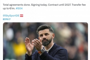 普莱滕伯格透露,沙尔克已经与普利茅斯主帅穆斯利奇就执教事宜达成全面协议,双方将在今天签下期限到2027年的合同,沙尔克将向普利茅斯支付补偿金,最高可达100万欧元。