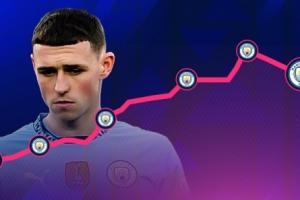 这是福登继半年前身价更新之后,再度迎来身价下跌。对比去年此时巅峰的1.5亿欧身价,福登的身价一年之内缩水了5000万欧。