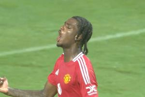 体育资讯05月30日讯 友谊赛曼联vs中国香港最后时刻,阿玛德传中,海文头球破门,曼联将比分锁定为3-1!