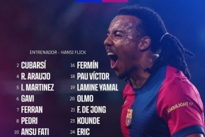 前锋:7-费兰-托雷斯、10-法蒂、11-拉菲尼亚、18-保-维克托、19-亚马尔