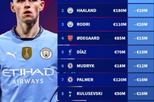 体育资讯5月31日讯 德转更新了英超球员身价,并盘点了此次更新身价跌幅榜,具体如下:
