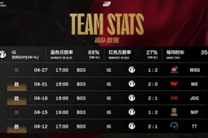 体育资讯4月30日讯 LPL第二赛段WBGvsIG的赛前,官方放出了两队截至今日的相关数据;