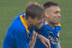 体育资讯05月31日讯 明日凌晨,国米对阵巴黎的欧冠决赛即将开打。赛前国米来到安联球场踩场热身,劳塔罗与阿切尔比嬉戏打闹,氛围轻松。