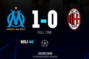在欧冠决赛历史上,法国球队只与意大利球队相遇过1次,在1992/93赛季,马赛1-0击败AC米兰获得了队史首个欧冠冠军。巧合的是,那场欧冠决赛正是在慕尼黑进行。