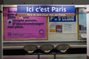 距离巴黎圣日耳曼与国际米兰的欧冠决赛仅剩数小时,整个巴黎的气氛逐渐升温,甚至连地铁站名也加入了这场狂欢。在通往王子公园球场的圣克鲁门站,巴黎大众运输公司更换了站名标识,原本的“圣克鲁门”被替换为“这里是巴黎”,以此声援这支有望首夺欧冠的巴黎球队。当然,原站名仍以小字号标注在下方。