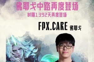 体育资讯5月31日讯 LPL第二赛段淘汰赛TESvsFPX第四局,,FPXCare选出佛耶戈中路,此为中路佛耶戈时隔1392天再度登场;