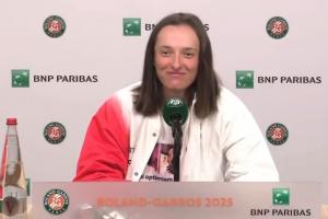 斯瓦泰克先是绷着说了一句no,接着绷不住了,现场记者们也都跟着大笑。斯瓦泰克:“我擅长撒谎吗?天啊,我真的做不到。”