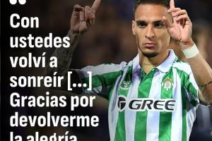 体育资讯06月01日讯 曼联前锋安东尼与贝蒂斯的租借合同将在6月30日到期,本赛季他代表贝蒂斯出战26场比赛,贡献9粒进球和5次助攻。今日,安东尼用公开信的形式向贝蒂斯告别和表达感谢。