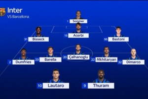 体育资讯4月30日讯 北京时间明天凌晨,国米将在欧冠半决赛首回合比赛中客场对阵巴萨。记者Matteo Barzaghi透露了国米此役的首发阵容,图拉姆复出首发。