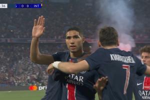 体育资讯6月1日讯 欧冠决赛巴黎vs国米,比赛第12分钟,杜埃助攻阿什拉夫攻破旧主大门,随后拒绝庆祝。