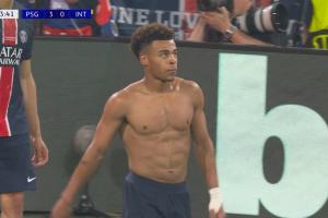 比赛第63分钟,杜埃破门2射1传,激情脱衣庆祝!随后杜埃因脱衣庆祝吃到黄牌,并在第67分钟被巴尔科拉换下。场上比分巴黎3-0领先国际米兰!