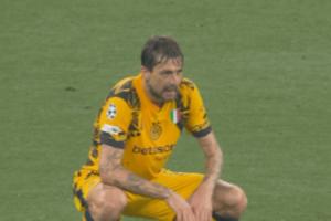 本场比赛国米37岁老将阿切尔比首发踢满90分钟,跑动距离10.67公里全场第三,但下半场面对巴黎锋线的多次冲击,阿切尔比屡屡成为漏洞,在马尤卢从身边杀出打入巴黎本场第5球后,阿切尔比无奈蹲在地上喘着粗气。