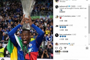 体育资讯6月1日讯 切尔西前锋杰克逊更新社媒动态,庆祝赢得欧协联冠军。