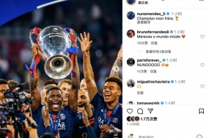 赛后,努诺-门德斯晒照庆祝难掩激动之情,配文写道:冠军啊兄弟!🏆