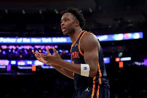 尼克斯球员出场37分钟,18投10中(三分7中2),罚球3中2,拿到24分5篮板3助攻2抢断2盖帽,正负值-15。