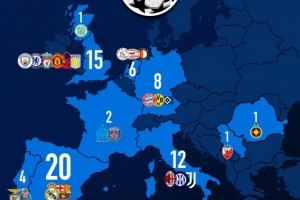 欧洲各国欧冠冠军数量更新