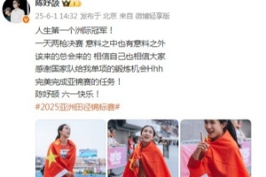 体育资讯6月1日讯 夺得亚洲田径锦标赛女子200米金牌后,陈妤颉更新社媒进行了庆祝。