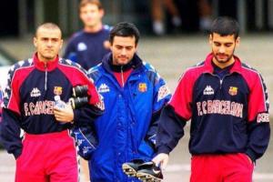 恩里克、穆里尼奥、瓜迪奥拉巴萨时期合照