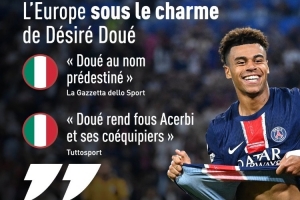 “对迪马尔科而言这是噩梦之夜,而对杜埃则是狂欢之夜。他成为欧冠决赛中进球并助攻的第二年轻球员……仅次于1968年随曼联夺冠的布莱恩-基德。荣耀属于杜埃,几分钟后他在超过半座球场的起立掌声中被换下。杜埃名副其实(注:Doué在法语中有‘天赋’之意)。去年夏天杜埃以5000万欧元从雷恩转会而来。他悄无声息地降临王子公园球场,并未引起太多轰动。事实上,他赛季初只是巴尔科拉的替补……但最终取代了后者……并让我们至少部分遗忘了姆巴佩。他那不拘一格且难以预测的风格为巴黎的进攻注入了新活力。”