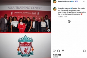 体育资讯6月2日讯 利物浦新援弗林蓬在上周日发布社媒,分享了自己加盟红军的感受。