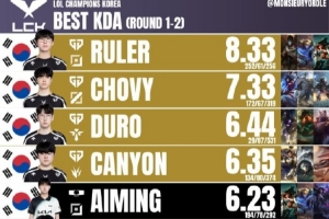 体育资讯6月2日讯 LCK官方发布了常规赛的KDA榜单,GEN中野下辅四人包揽前四,Kiin排第八;