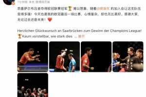 赛后,波尔在社媒写道:“恭喜萨尔布吕肯夺得欧冠联赛冠军🏆 难以想象,随着樊振东的加入会让这支队伍变得多强!今天也是我的欧冠最后一场比赛,心情复杂,却也无比美好。感谢大家,无论过去还是未来!❤️”