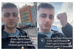 这名球迷还表示,自己现在已经身无分文,必须想办法回家。他说道:“我刚从波兰的监狱中获释,刚刚得知切尔西赢得了欧协联冠军。