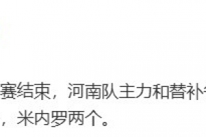 “河南队与上海申花热身赛结束,河南队主力和替补各踢半场,0比3不敌对手,申花进球的是安德烈一个,米内罗两个。”