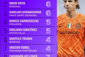 体育资讯6月2日讯 2024-25赛季的欧冠已经落下帷幕,巴黎圣日耳曼以5-0的比分大胜国米夺冠。Squawka统计出了欧冠多项数据排名情况,国米门将索默位居零封榜榜首,他把守的球门共实现7次零封。
