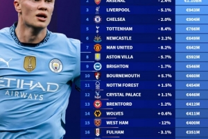 体育资讯6月2日讯 德转不久前更新了英超球员身价,并盘点了目前英超身价榜(本赛季20支球队),以及各支球队身价变化情况,具体如下: