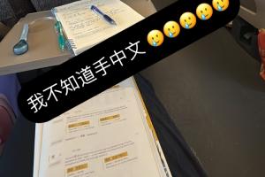 塞尔吉尼奥的妻子社媒晒出在高铁上学中文的照片,并用中葡双语配文:这要求也太高了,我不知道“手”(说)中文😪😪😪😪😪
