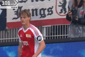 本赛季德甲第30轮,柏林联合4-4战平斯图加特,奎菲尔德在比赛第比赛第38分钟轰入世界波。