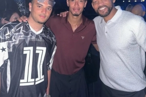 体育资讯6月2日讯 据《太阳报》报道,在伊维萨岛度假期间,皇马中场贝林厄姆和奥斯卡奖得主威尔-史密斯一起参加了一次聚会并合影留念。