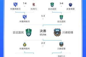 体育资讯5月1日讯 亚冠精英联赛半决赛,利雅得胜利2-3不敌川崎前锋,川崎前锋进决赛。