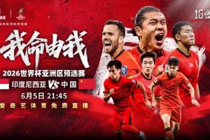 爱奇艺官方宣布,免费直播6月5日世亚预18强赛中印之战。