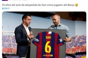 2015年6月3日,巴萨为哈维举办告别仪式,巴萨官方更新社媒动态,晒出哈维获赠纪念球衣的照片。