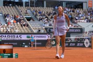 体育资讯06月03日讯 法网1/4决赛郑钦文vs萨巴伦卡首盘双方战至6-5时,郑钦文发球局比分30-30,此时萨巴伦卡回球,裁判认定界内,郑钦文认为出界了。