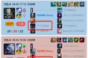 体育资讯6月3日讯 粉丝发现Chovy韩服五排带妹大乱斗,并且其中有一名玩家的ID叫朴到贤。