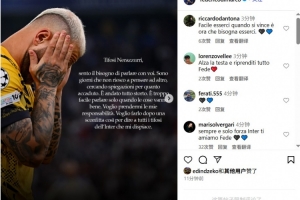 “亲爱的内拉祖里,我感到有必要和你们谈谈。这几天我无法思考其他事情,一直想为所发生的一切寻找解释。一切都出错了。人不应该只在一切顺利时才开口说话,我想承担起我的责任。在这样一场失利之后,我想这样做,这也是为了告诉所有国际米兰的球迷:对不起。”