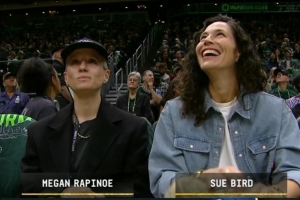 值得一提的是,西雅图风暴队传奇球星苏-伯德今天携未婚妻、前美国女足队长拉皮诺埃来到了现场观战。
