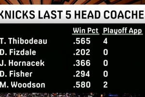 媒体晒图总结尼克斯最近五任主教练的执教战绩: