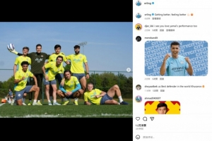 体育资讯5月1日讯 曼城球星哈兰德在个人社媒晒出与队友埃德森 、B席等在训练场的合照,配文写道:“感觉已经越来越好了!”