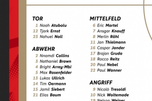 后卫:柯林斯(法兰克福)、布朗(法兰克福)、阿雷姆比(布拉加)、罗森菲尔德(弗赖堡)、卢卡斯-乌尔里希(门兴)、厄尔曼(波鸿)、希伯特(杜塞尔多夫)、伊莱亚斯-鲍姆(埃弗斯堡)