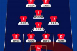 替补:1-颜骏凌、12-刘殿座、2-蒋光太、3-魏震、4-李磊、10-韦世豪、15-汪士钦、16-黄政宇、20-刘诚宇、21-杨明洋、22-王子铭、23-吴少聪