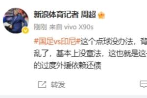 记者周超在社媒发文评价该点球:“这个点球没办法,背后动作,也没碰到球,人家主场。中国踢的太乱了,基本上没章法,这也就是这一批球员的正常情况。中国还要给金元足球世代的过度外援依赖还债。 ”
