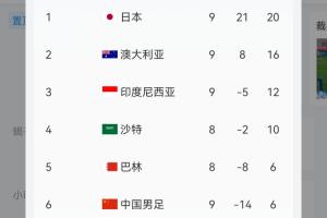 实时积分榜上,印尼12分升至第三,国足6分垫底。
